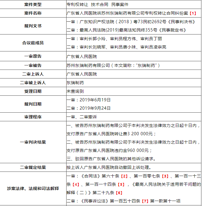 广东省人民医院诉苏州东瑞制药有限公司专利权转让合同纠纷案 ---案例规则评析之一